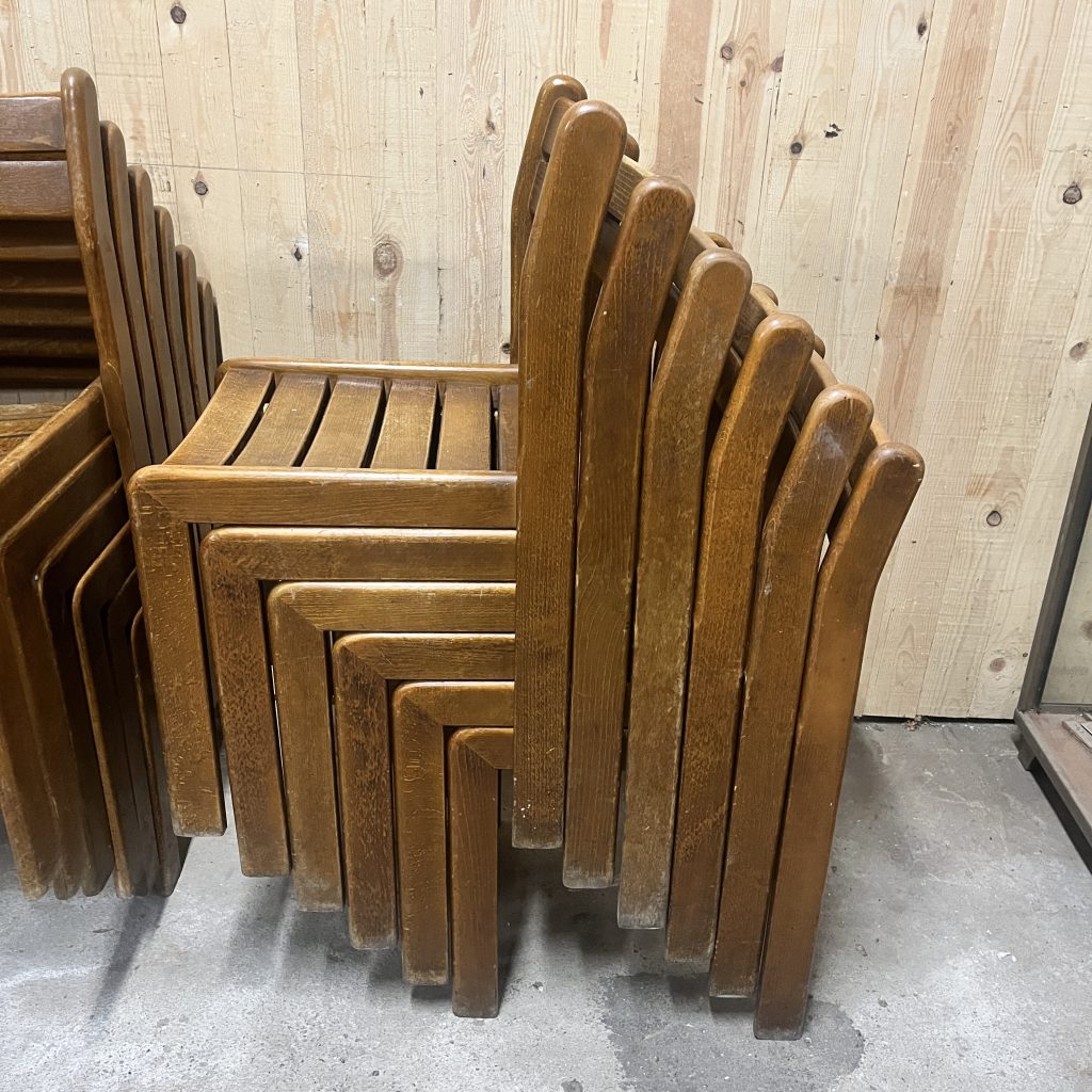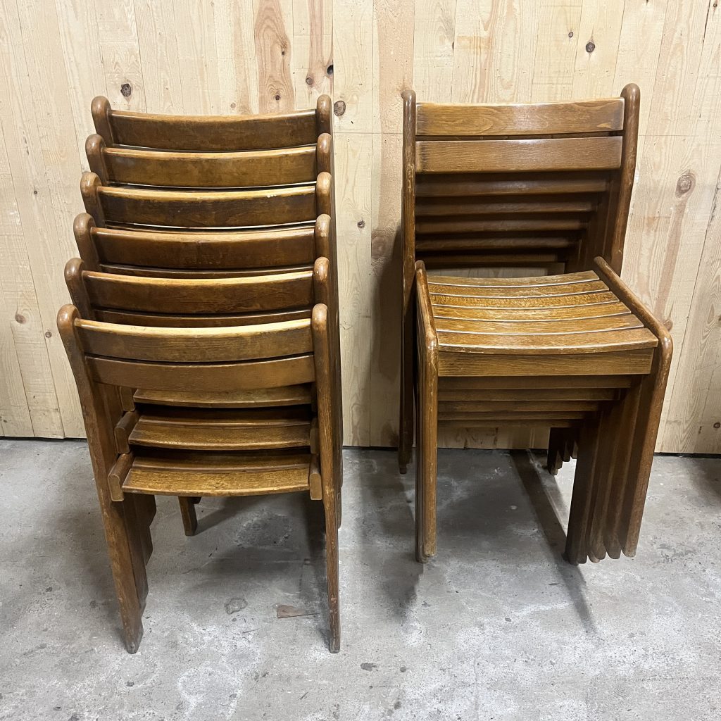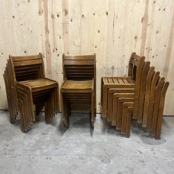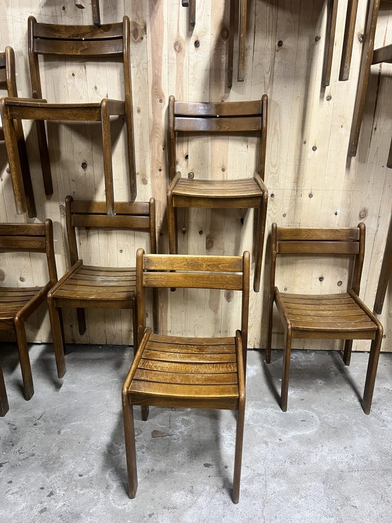 Série de chaisesSérie de 18 chaises en hêtre teinté massif dans le goût d’André Sornay .Set of 18 chairs in solid stained beech in the style of André Sornay.